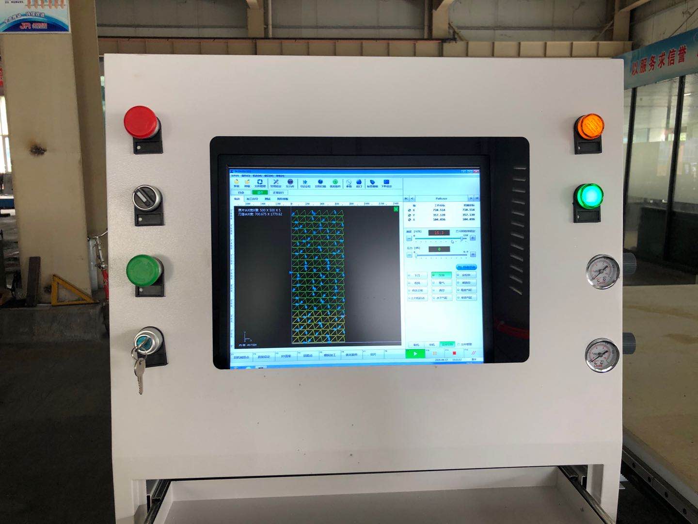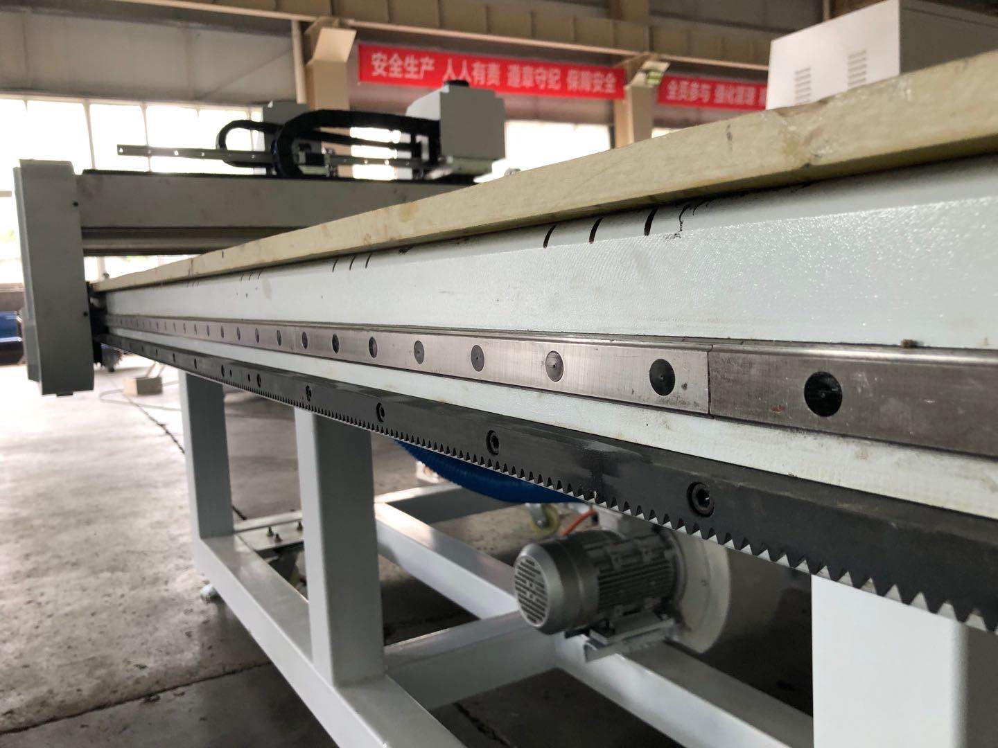 設(shè)備簡介:產(chǎn)品功能:適用于玻璃的切割;玻璃膠膜的刻繪。注:可定制多頭切割。設(shè)備占地面積:9平方米操作人員: 切割:1人(懂電腦基本操作)掰片:1人產(chǎn)品特點:l 總線絕對值電機、進口高精度齒條等頂級元氣件配置有效地保障玻璃切割精度及穩(wěn)定性,使用壽命更長,能滿足各種形狀玻璃的切割;l 開機不用回原點,斷電會自動記錄機械坐標(biāo),通電后無需找回機械原點,提高工作效率;l 無正、負向限位開關(guān),減少故障點和更換