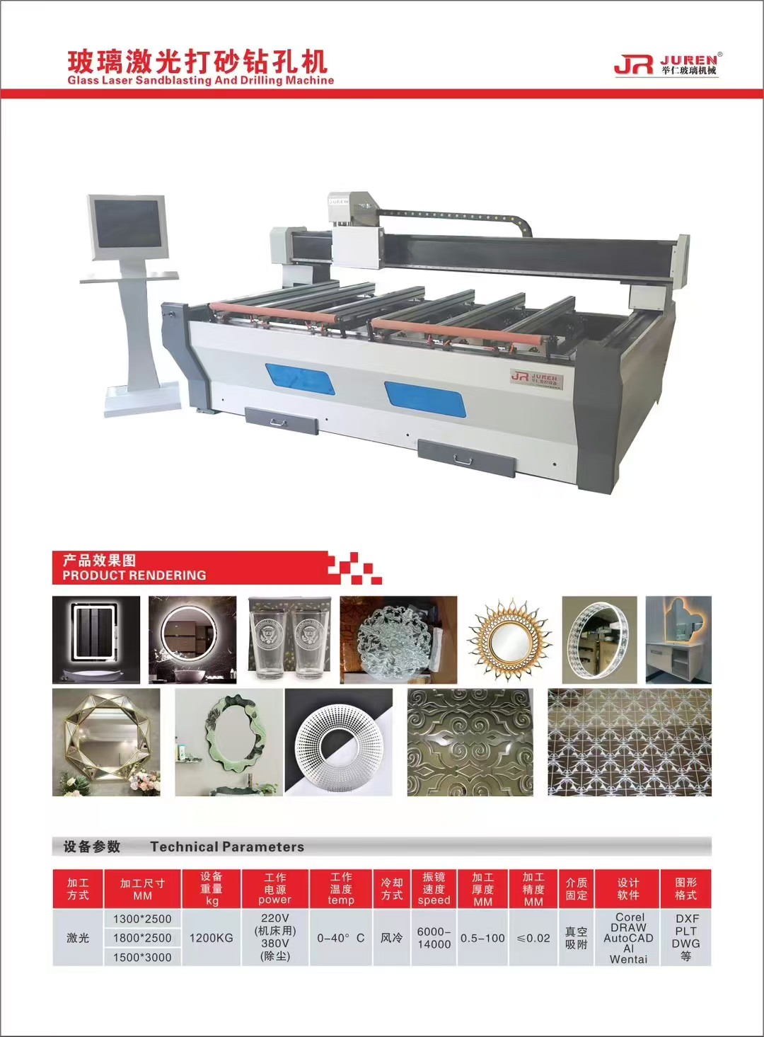 產(chǎn)品特點 精準可控激光束聚焦性強,可實現(xiàn)微米級雕刻,圖案/文字邊緣光滑無毛刺,支持復(fù)雜圖形、漸變效果定制。超高精度無損傷采用皮秒/飛秒超快激光,光斑直徑僅5μm,最小孔徑達20μm,精度誤差3μm;孔壁粗糙度Ra<0.5μm,崩邊可控制在5μm內(nèi),良率超99%,且熱影響區(qū)極小,不產(chǎn)生微裂紋。孔型適配性強支持圓孔、方孔、異形孔等多種孔型,還能加工錐度孔、盲孔及深徑比50:1的微孔,適配不同行業(yè)的定制化需求。多光束并行技術(shù)讓加工速度達3000孔/分鐘,可24小時連續(xù)工作;能兼容0.1mm超薄到20mm加厚玻璃,還適配藍寶石等硬脆材料高效環(huán)保無粉塵、無耗材(無需砂料),加工過程無噪音,相比傳統(tǒng)噴砂效率提升3-5倍,且不損傷玻璃基材。靈活適配兼容平面、曲面玻璃,支持不同厚度(1-20mm)、材質(zhì)(普通玻璃、鋼化玻璃、藝術(shù)玻璃)加工,可批量生產(chǎn)也可單件定制。智能便捷搭載數(shù)控系統(tǒng),支持CAD/CORELDRAW等格式導(dǎo)入,操作簡單,一鍵啟動,還可聯(lián)動自動化生產(chǎn)線。持久耐用激光頭壽命長(10萬小時),設(shè)備穩(wěn)定性強,維護成本低,打砂效果耐摩擦、不易褪色。